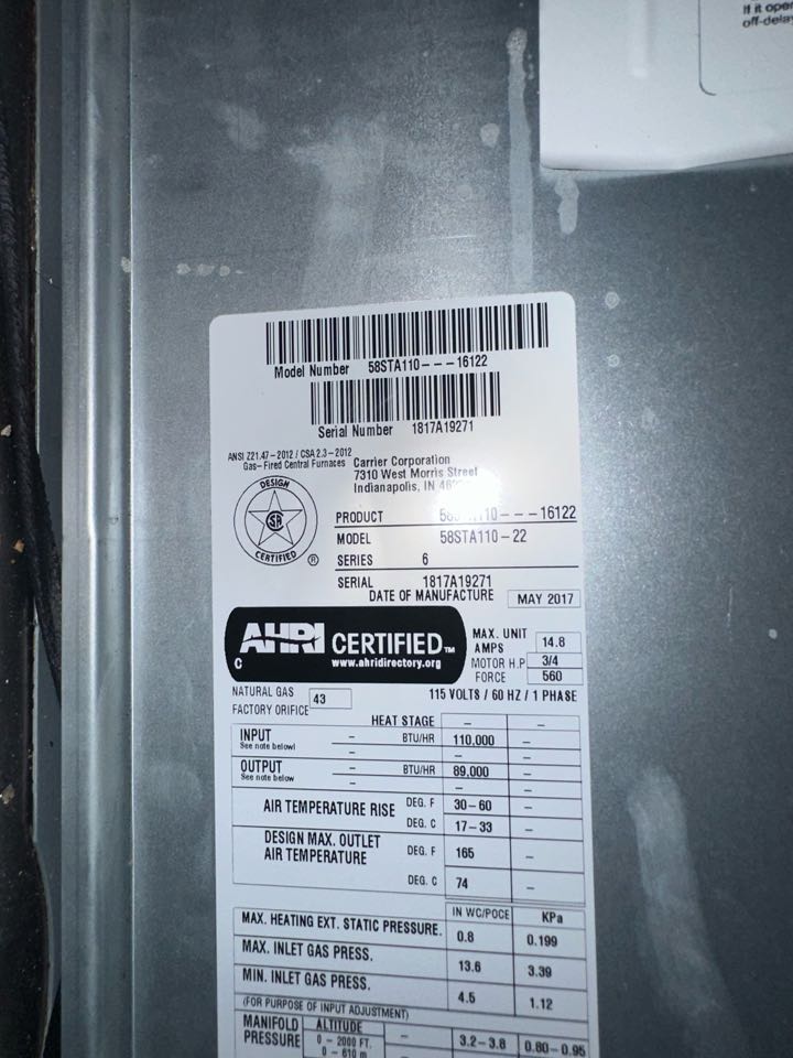Carrier gas furnace heat maintenance and safety check.