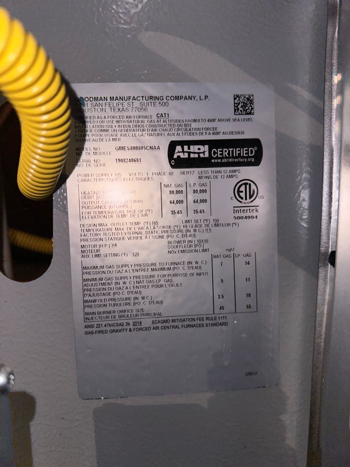 Goodman furnace heat maintenance.