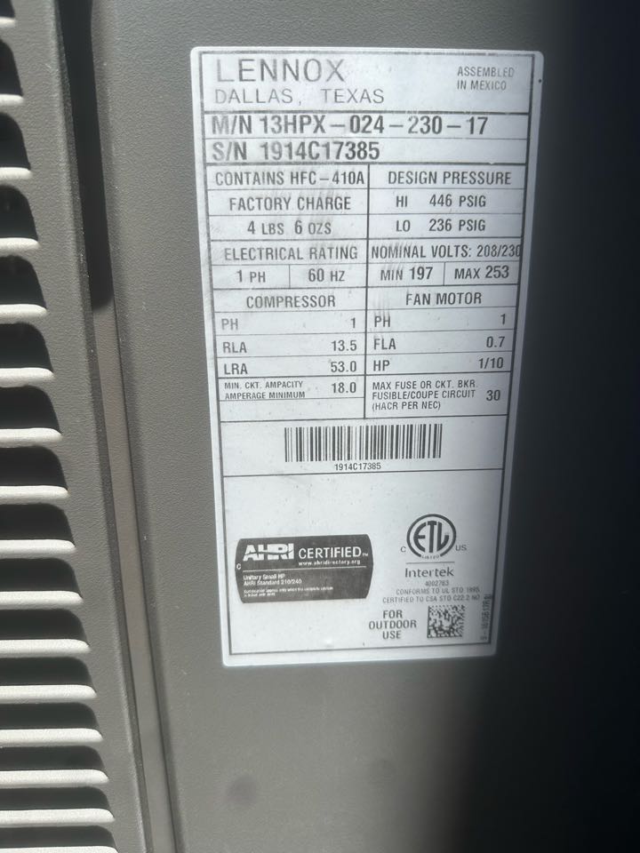 Lennox air conditioning inspection and cleaning
