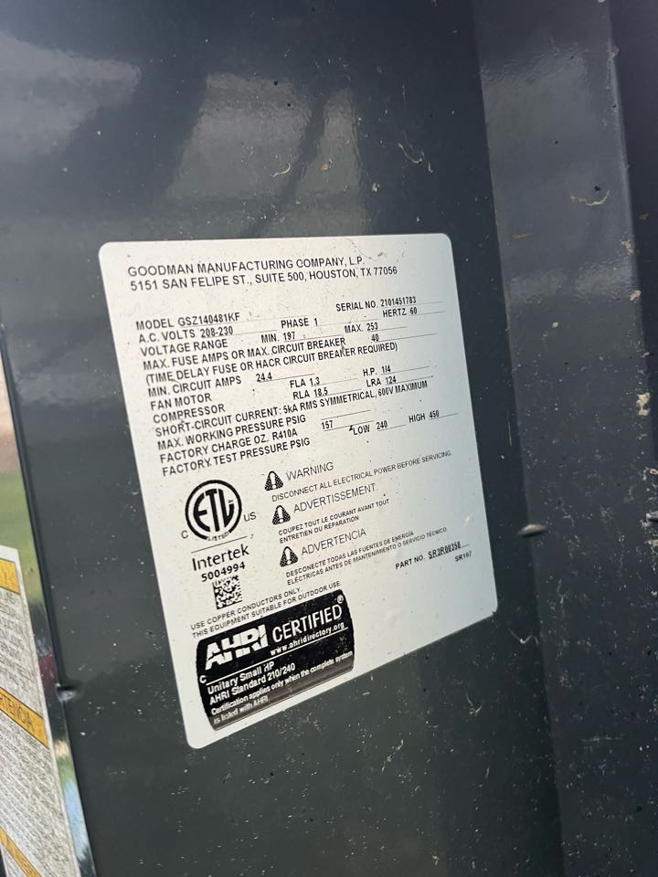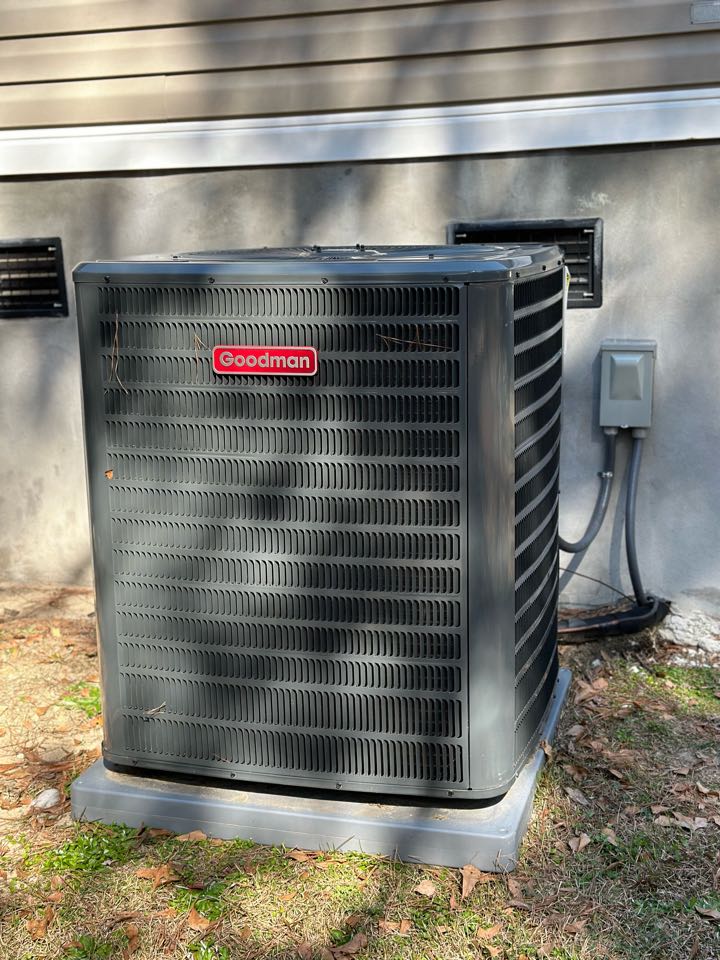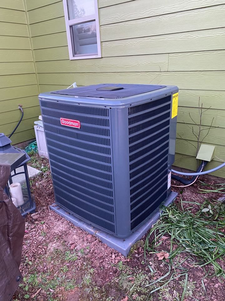 Quality control inspection for the installation of a new Goodman heating and cooling system.