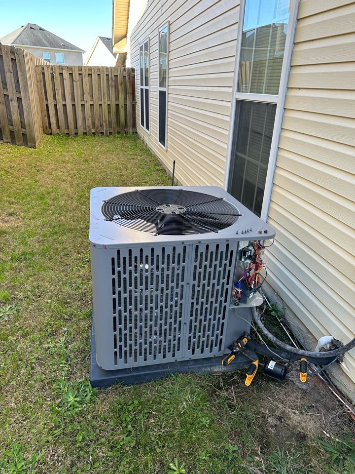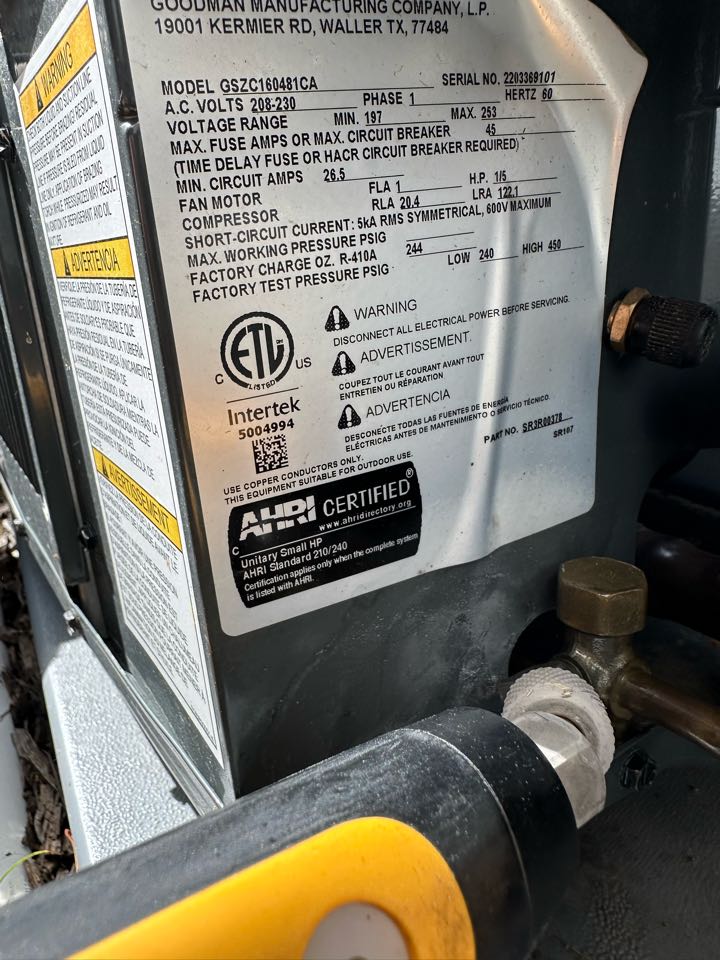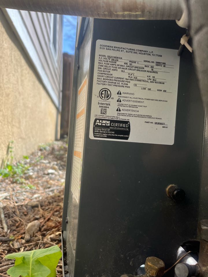 Quality control inspection for the installation of a new Goodman heat pump system.